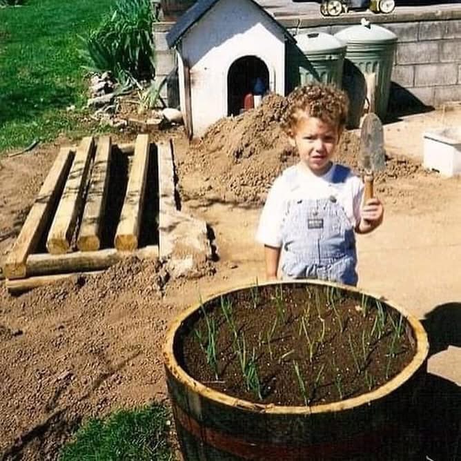“I always loved playing in the dirt,” Brett says, laughing as he scrolls to a childhood photo. “Check out that hair!”