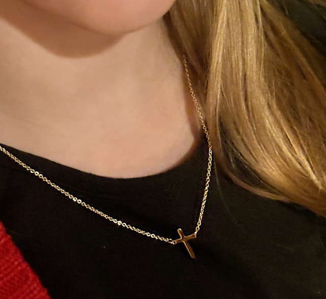 This is such a sweet way for kids to imagine the world Jesus was born into. The idea is to recreate a shepherd’s setting — a simple meal, eaten by candlelight, on the floor. While the girls ate, another mom read Luke 2:1–20. We passed around frankincense and myrrh, then gifted gold cross necklaces.