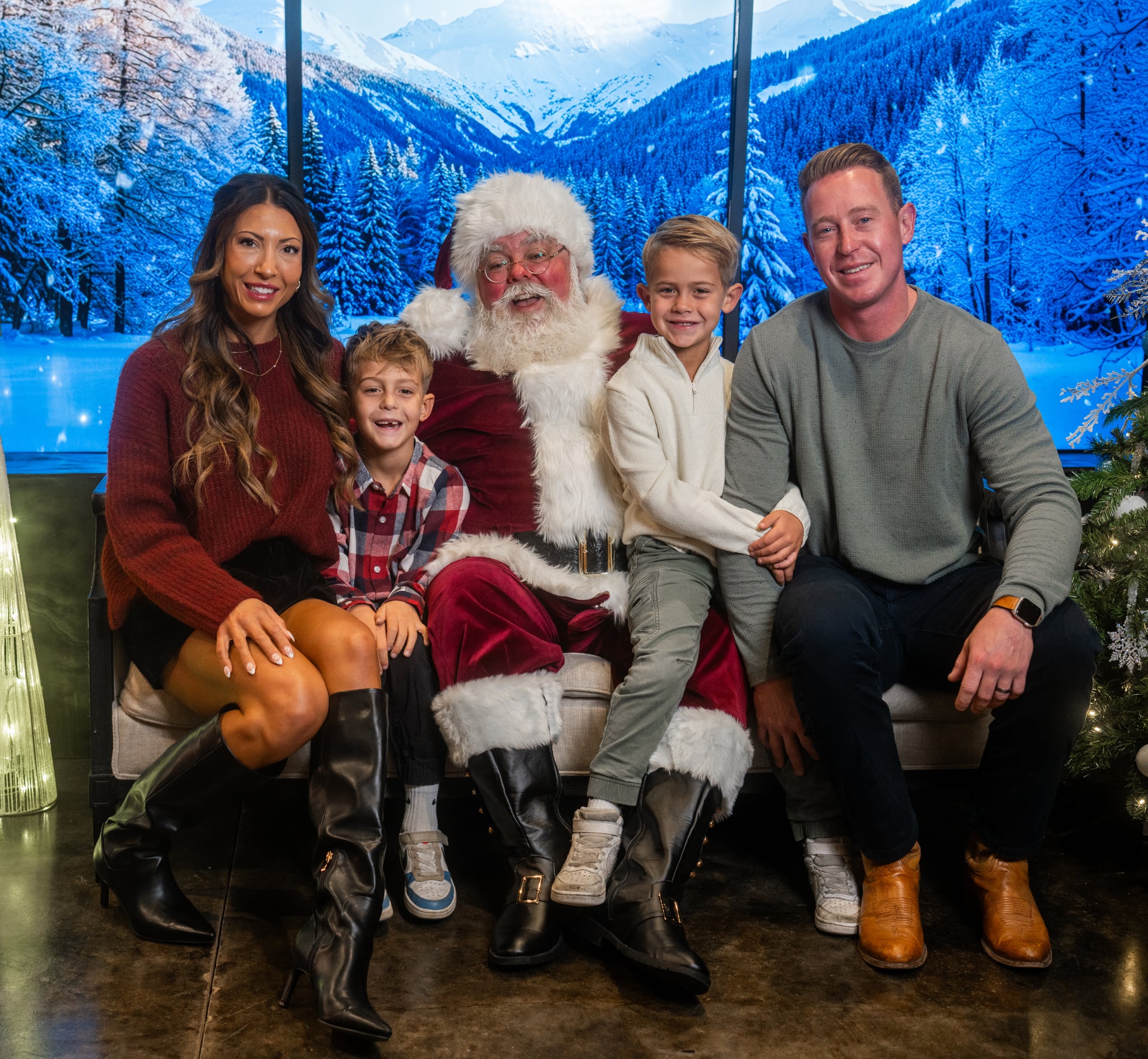 We wrapped up with family photos across three different Christmas-themed backdrops, each one worthy of a holiday movie poster. Santa even shared a little of “his magic,” and I watched my kids nod solemnly like they had just received classified elf information.